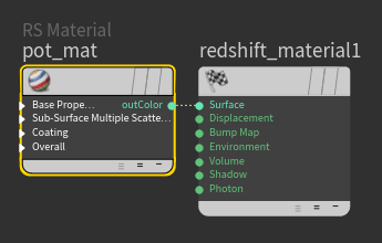 The Overall Pot Color group is made up of labeled color constant nodes identifying the sections of the pot that these nodes color. These nodes color specific portions of the container due to the mask consisting o a constant ramp. The creation of an the anled stripe is done through rotating the container's UVs through the uvproject1 node in the geo tree. From trial and error it was concluded that it is not possible to rotate a ramp a specific amount in the Redshift material builder, therefore the bottom stripe visible in the reference image has been omitted from the final product.